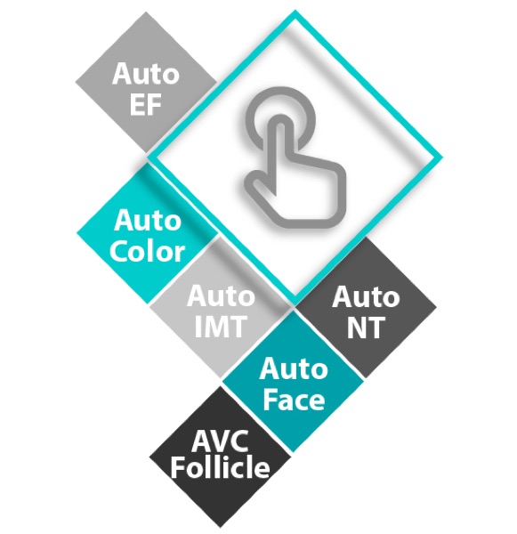 Die automatischen Werkzeuge von SonoScape können Ihnen helfen, mehr zu erreichen. Sonographen können das Ergebnis mit nur EINEM Klick abrufen. Die automatischen Werkzeuge umfassen Auto NT, Auto Face und AVC Follicle in der Geburtshilfe/Gynäkologie sowie Auto EF und Auto IMT in der Kardiologie.
