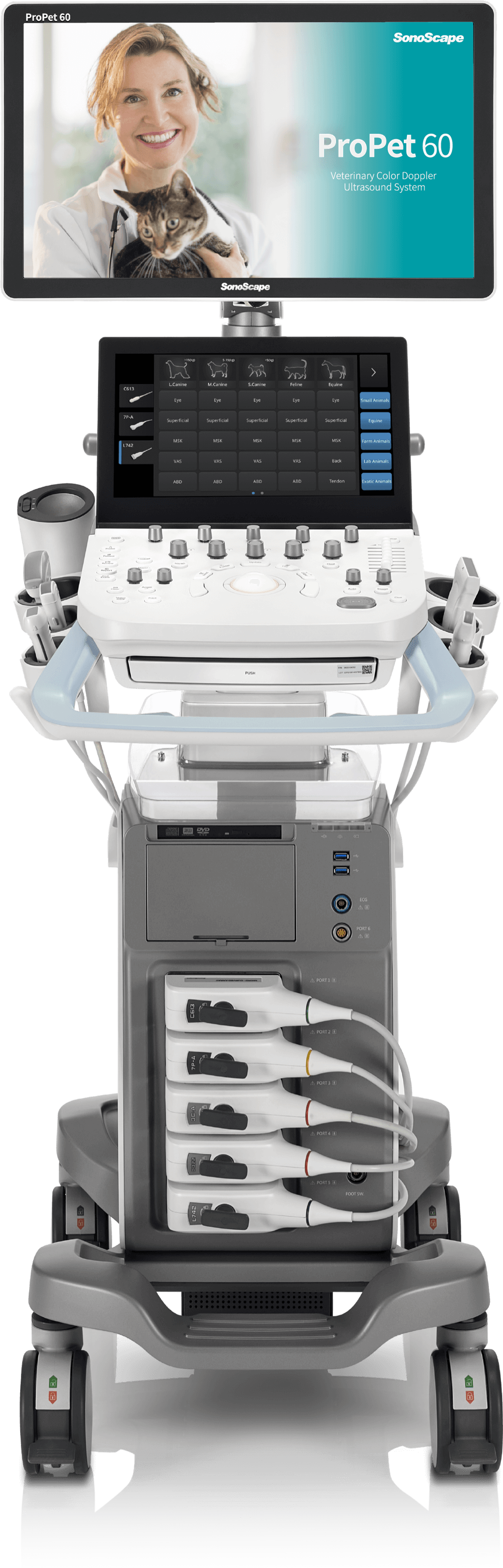 Um den Bedürfnissen und Anforderungen von Tierärzten gerecht zu werden, bietet ProPet 60 als kostengünstige Ultraschalllösung eine raffinierte Kombination aus herausragender klinischer Präzision, gesteigerter Produktivität und durchdachtem Workflow für die tägliche Tierarztpraxis. Mit dem gesamten Spektrum an HD-Sonden bietet es alles, was Sie für abdominale, reproduktive, kleine Teile, orthopädische und sogar kardiale und thorakale Bildgebung mit maximalem Wert benötigen.