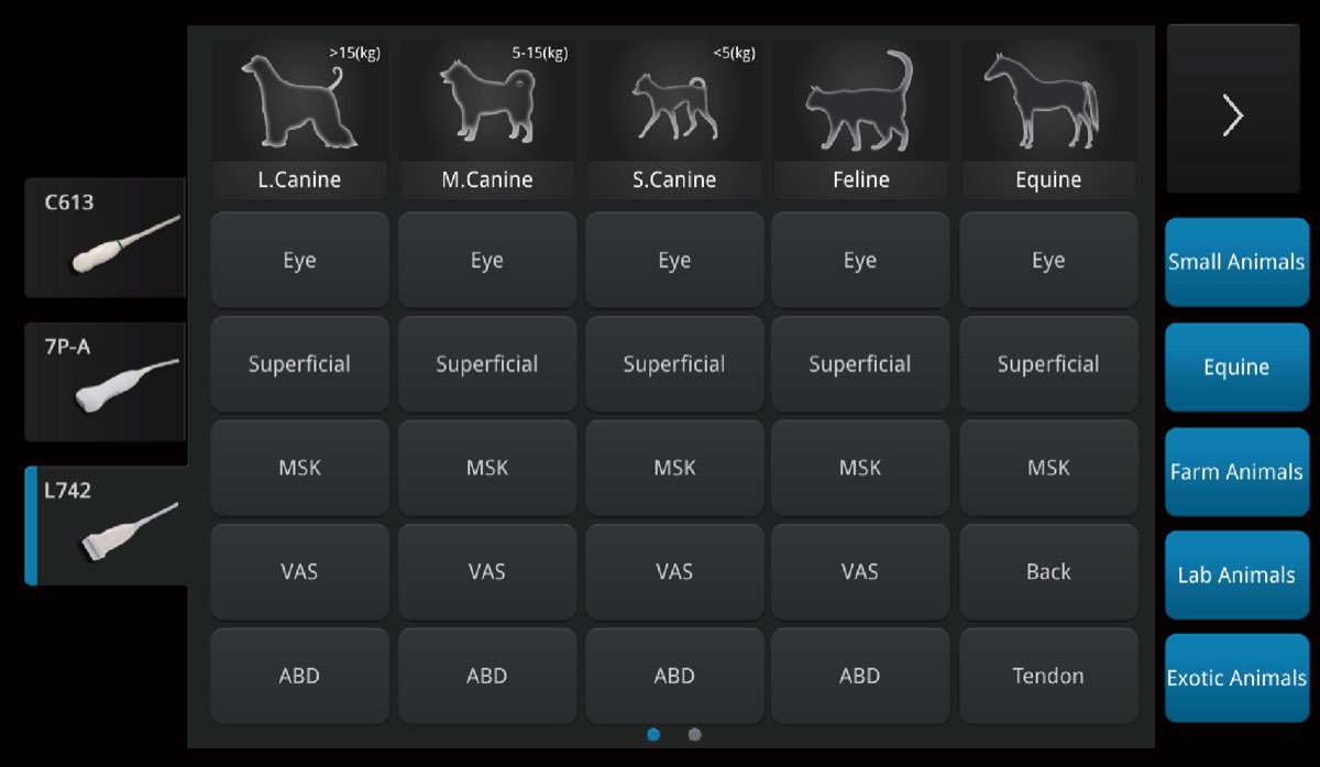 Alle Kreaturen, ob groß oder klein. Tiere sind die engsten Freunde und vertrauenswürdigsten Partner der Menschen. SonoScape hat sich stets darauf konzentriert, dedizierte diagnostische Bildgebungslösungen für veterinärmedizinische Bedürfnisse zu erforschen. Mit dem Beginn einer neuen Phase in der Ultraschallbildgebung präsentiert SonoScape die brandneue ProPet-Serie, um professionelle veterinärmedizinische Lösungen für eine Vielzahl von Arten anzubieten, angefangen von kleinen Haustieren bis hin zu großen Tieren.